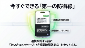 「現在営業時間外のため、明日〇時以降に順次ご返信いたします」と設定し、お客様に安心感を持ってもらう。