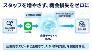 将来GoogleからLINEへお客様が流入してきても、AIが即座に一次対応。ただ質問に答えるだけでなく、予約や購入へ自然に誘導(攻めの接客)も行います。