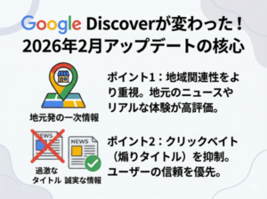 2026年2月、Googleはこの「おすすめ記事(Discover)」の仕組みに関して、非常に重要なアップデートを行いました。